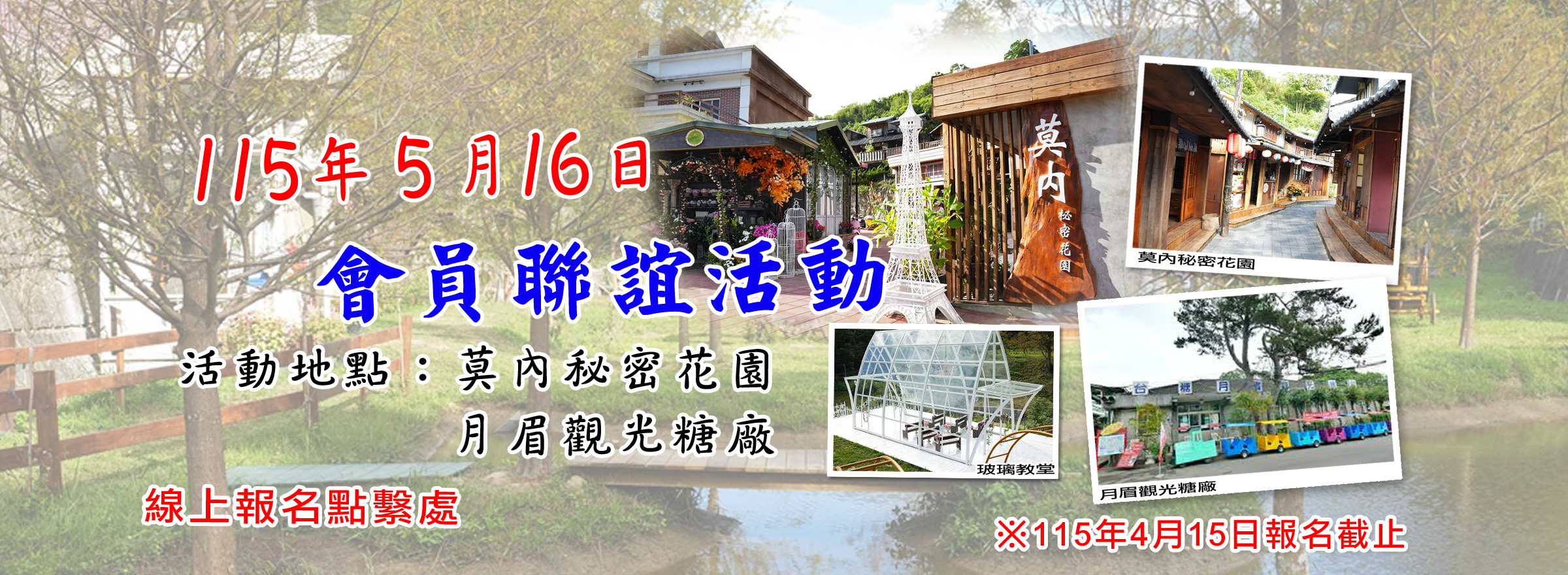 115年5月16日(六)舉辦本會115年度會員聯誼活動,歡迎會員眷屬一同參與,即日起開始報名,謝謝!